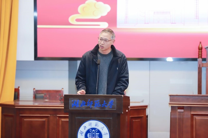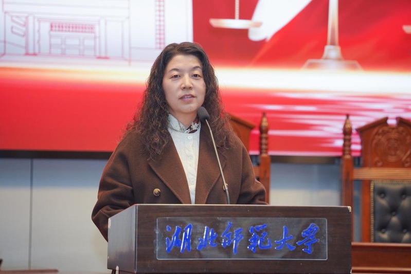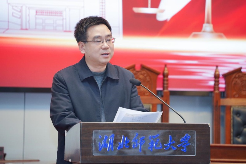 雷儒金在致辞中指出,模拟法庭实践教学活动是深入贯彻落实习近平法治思想的生动实践,也是推进法治育人,弘扬宪法精神,引导大家投身法治实践的鲜活课堂。他对长期关心、支持学校法学专业建设的黄石市政法机关及各界专家表示衷心感谢,并表示在国家“十五五”的征程上,湖北师范大学将持续锚定“争博点、强特色、创一流、促转型”的发展目标,系统推进学校教育、科技、人才体制机制一体化改革,培养新时代卓越法治人才,传递法治的精神和思辨的力量。