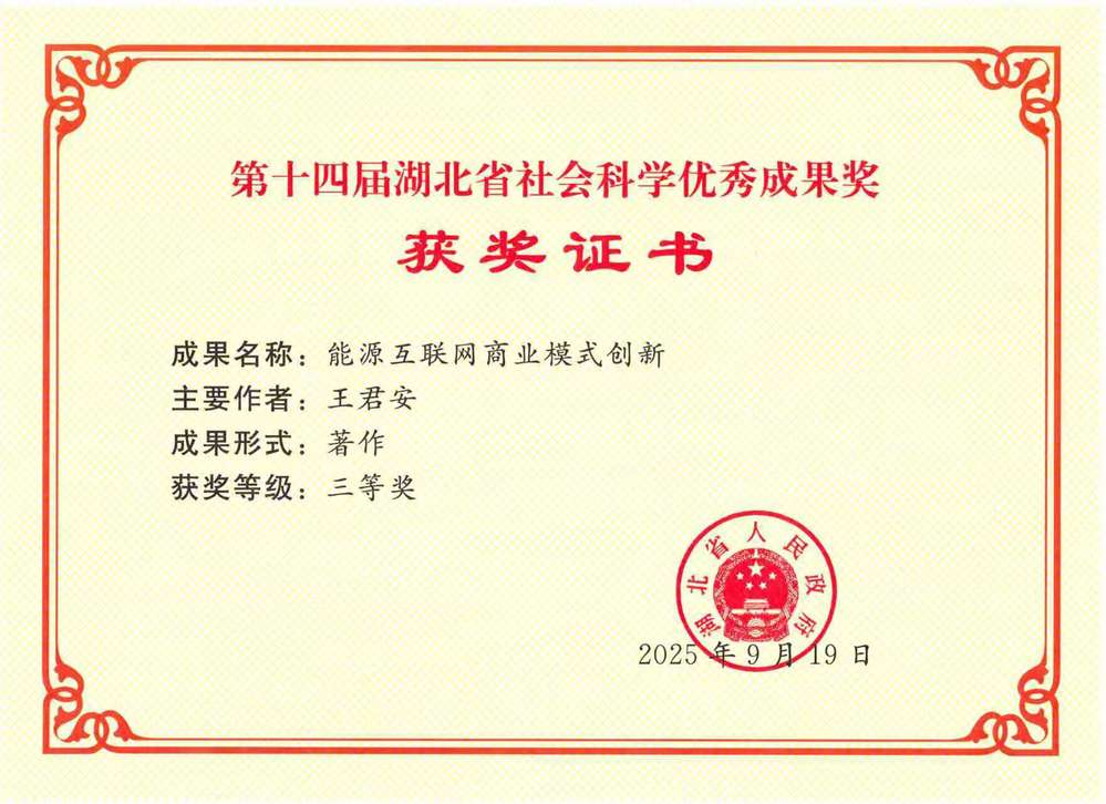 2025年8月,第十四届湖北省社会科学优秀成果公布,基地成员王君安获得三等奖。