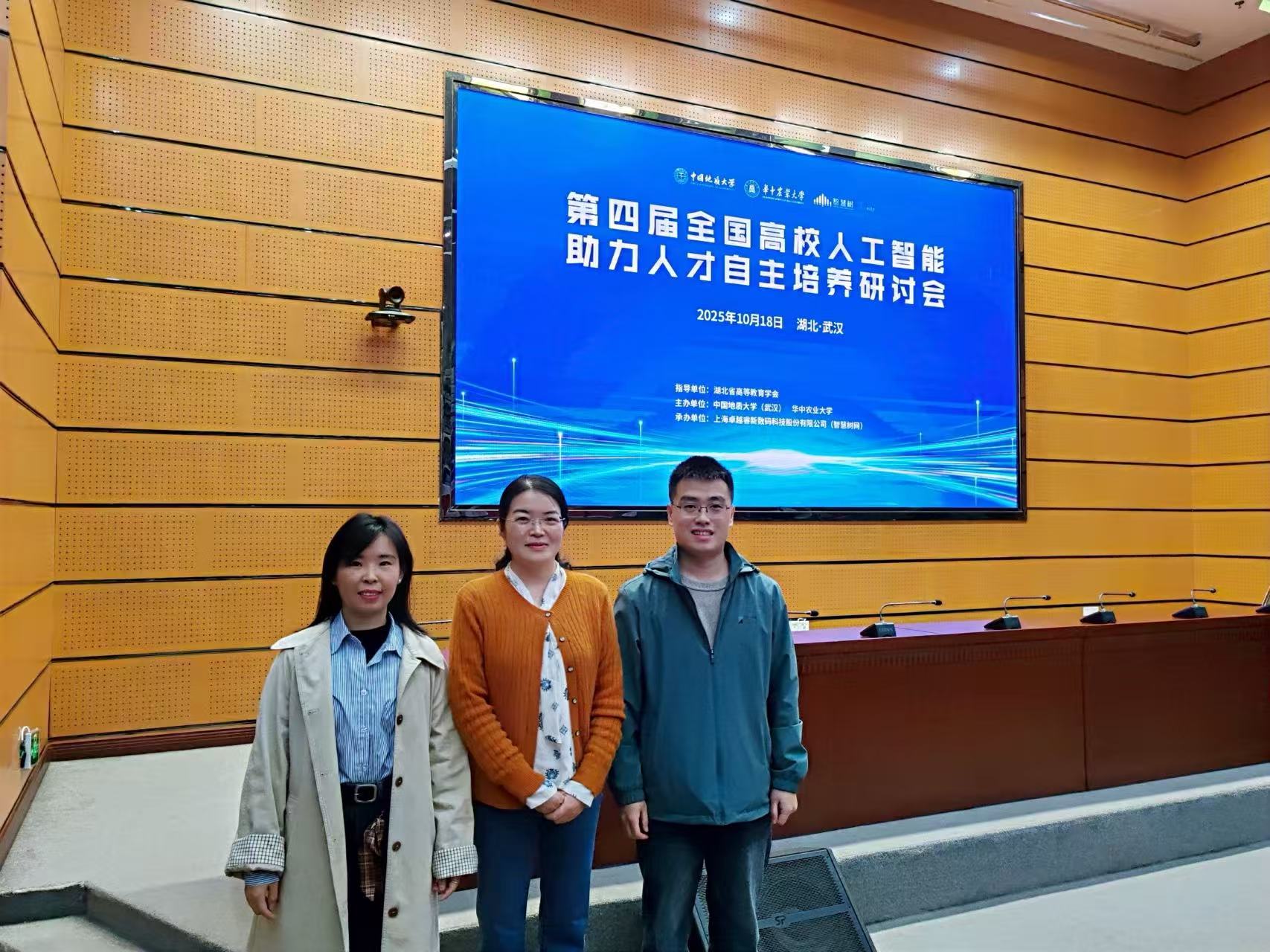 2025年10月18日,第四届全国高校人工智能助力人才自主培养研讨会在中国地质大学(武汉)举办,我院教师代表陈冬梅、常亚军、郝荣参加相关活动。
