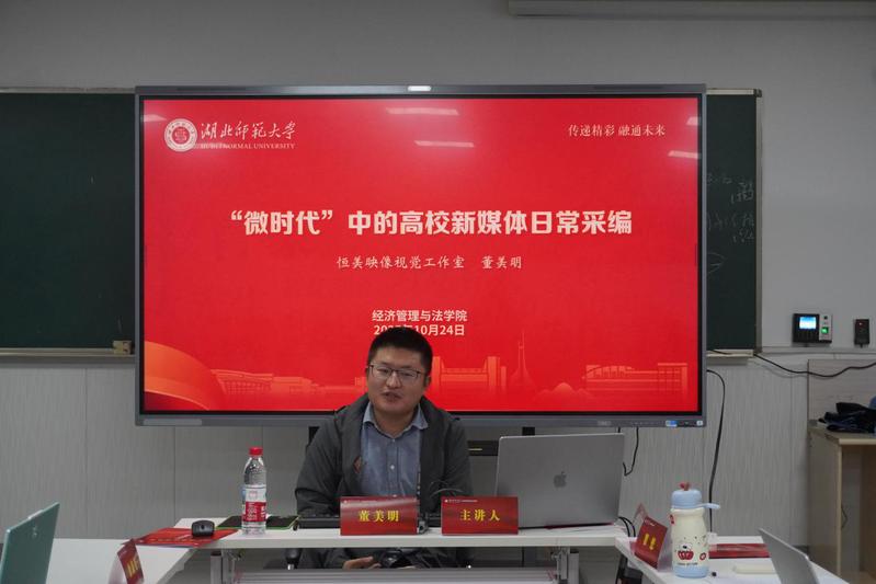 为帮助同学们提升新媒体素养与内容创作能力,快速掌握新媒体运营技能,搭建校园内容创作平台,经济管理与法学院于10月24日晚在人文楼21A203会议室开展“微时代”的高校新媒体日常采编专题课程。本次课程特邀董美明老师担任主讲。