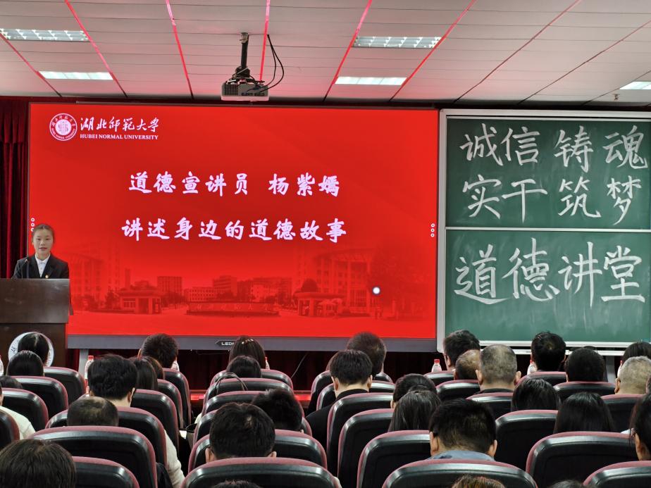 为深入贯彻落实习近平总书记关于加强诚信建设的重要指示精神,大力弘扬社会主义核心价值观,经济管理与法学院联合党委办公室、校长办公室、主体责任办公室以及学报编辑部,在信息大楼报告厅共同组织开展了以“诚信铸魂,实干筑梦”为主题的2025年道德讲堂活动。相关举办单位领导、教师、经管法学院第71期入党积极分子以及2025级学生代表共同参与。