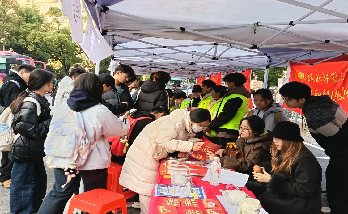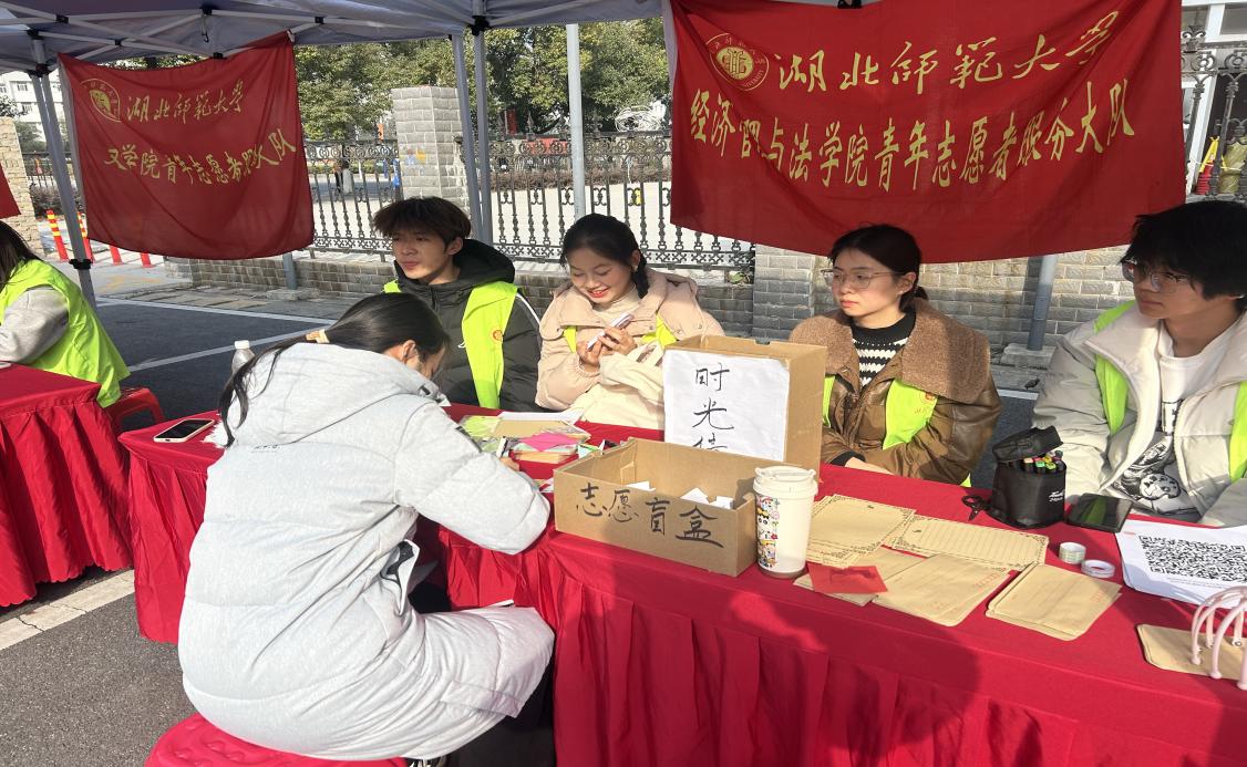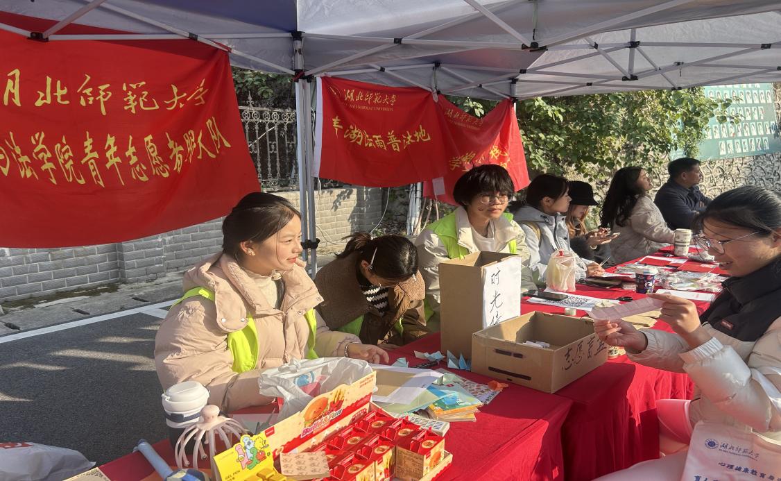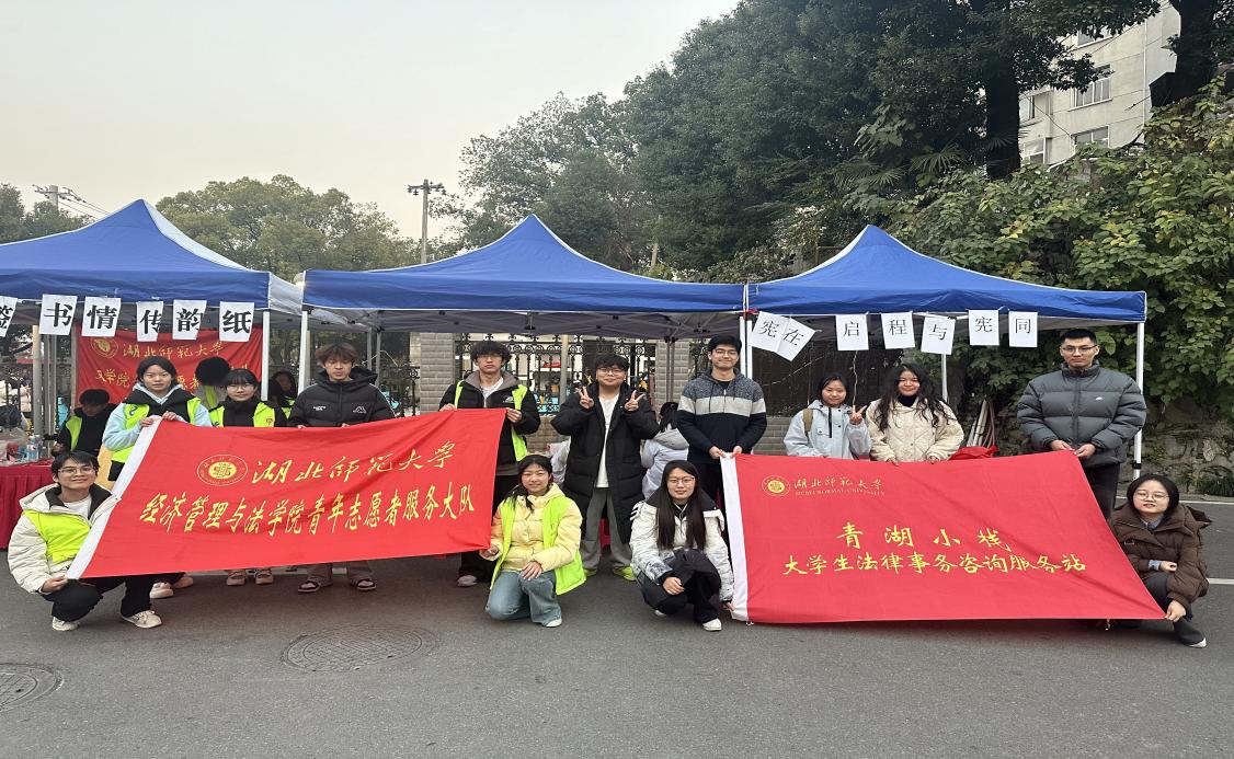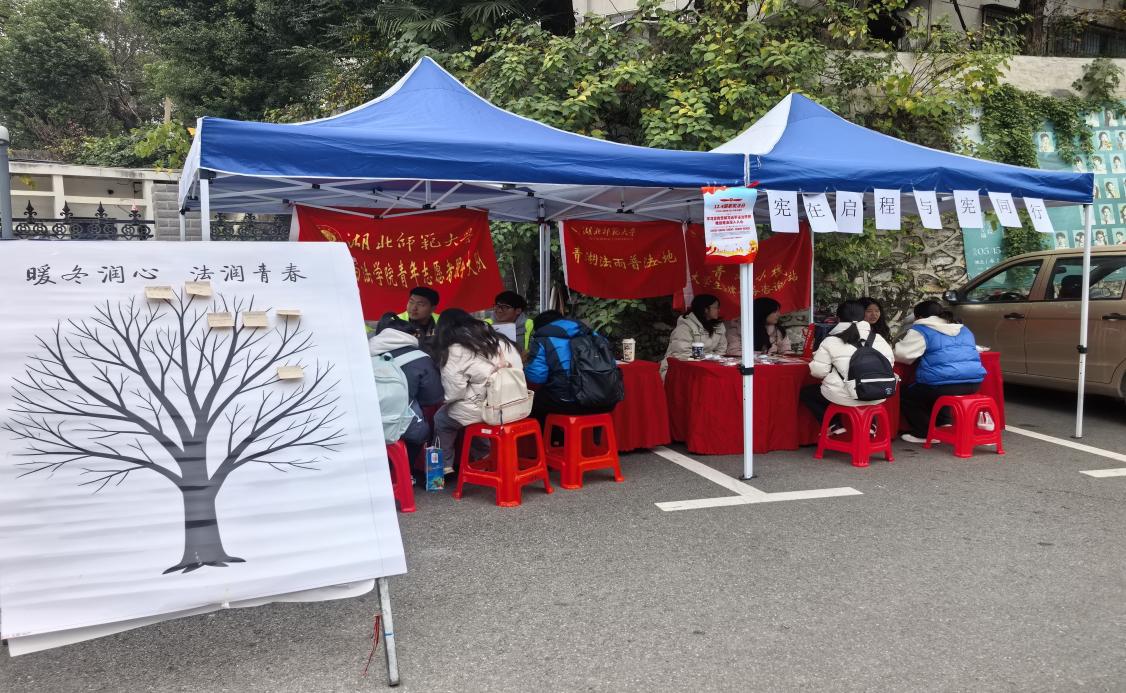 在全国第十二个宪法宣传周与第40个国际志愿者日相继到来之际,为深入学习贯彻习近平总书记关于志愿服务的重要指示精神,大力弘扬宪法精神与志愿精神,湖北师范大学经济管理与法学院青年志愿者服务大队联合青湖小栈大学生法律事务咨询服务站,于12月5日在琼林苑门口举办“暖冬润心,法润青春”主题志愿活动。活动以“心理关怀+法治教育+志愿精神”三维融合为特色,通过多元互动与温情服务,为冬日校园注入暖意,生动诠释了“奉献、友爱、互助、进步”的志愿精神。